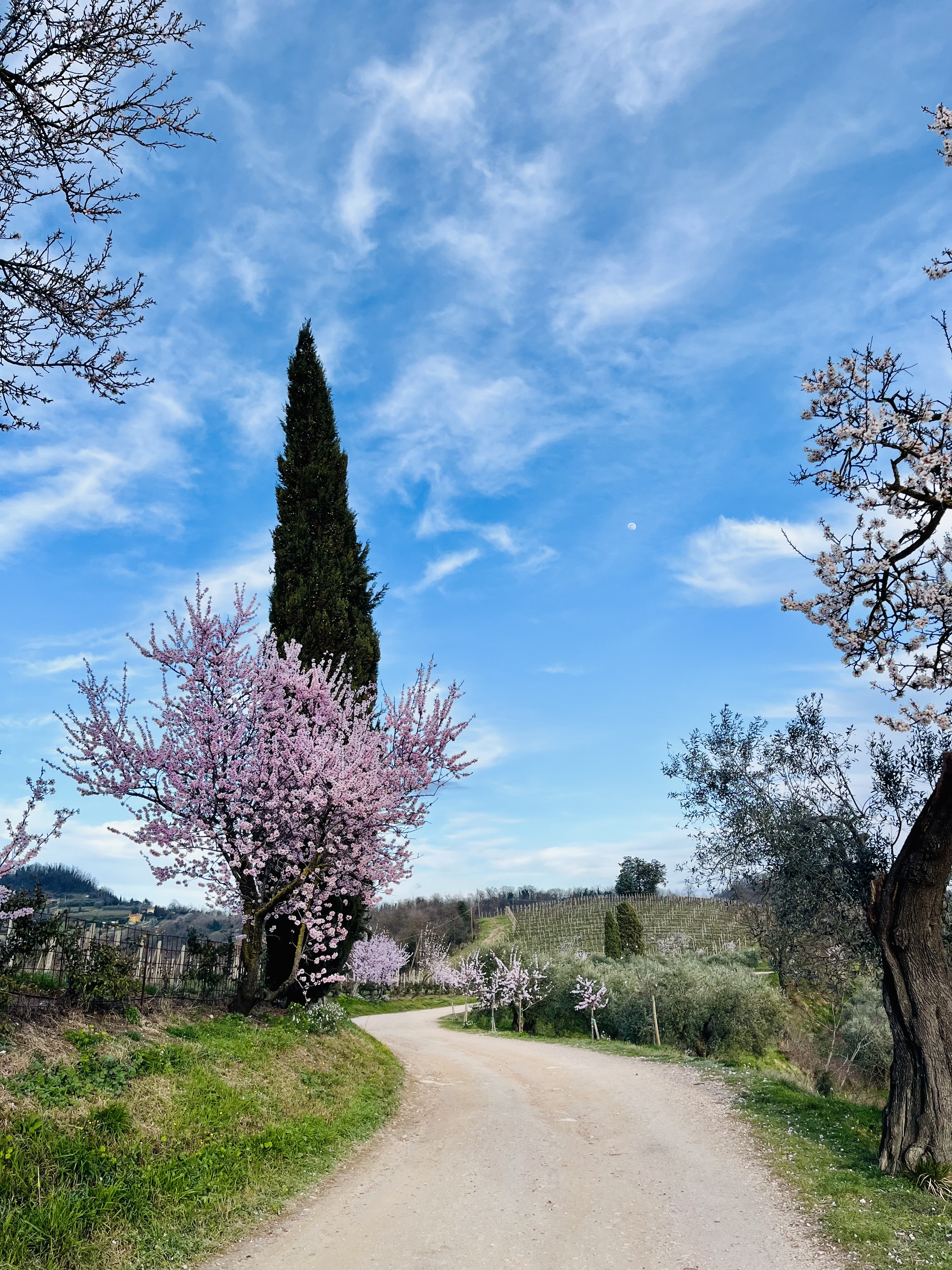 Il sentiero offre una vista magnifica sul Monte Rusta e passa su un viale circondato da ulivi e vigneti ma anche da mandorli che danno il meglio con la loro fioritura proprio in questo periodo. Non mancheranno anche alcuni cipressi che ricordano un po’ la mia amata Toscana.
