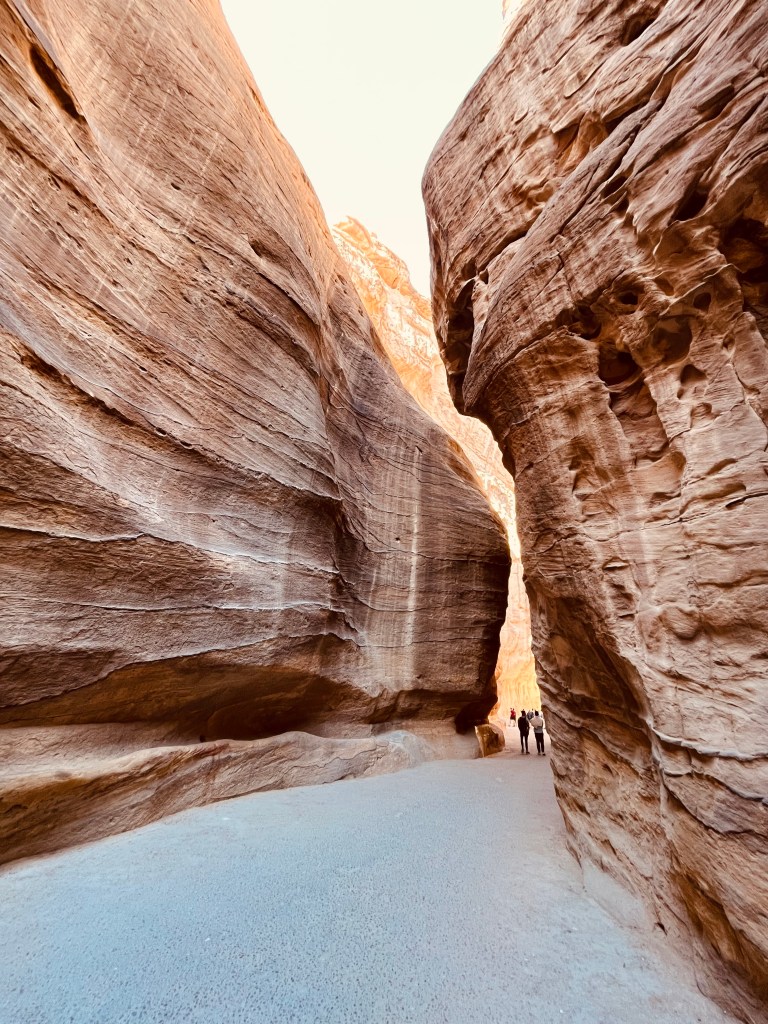 E’ la prima cosa che vedrete appena entrati a Petra. È un canyon alto, lungo più di 1 km, formato da pareti rocciose arancioni e rosse che fanno un bellissimo contrasto con il cielo azzurro (alzate lo sguardo e ammiratelo). Ci ripasserete al tramonto per uscire dal sito, e la luce sarà molto diversa rispetto alla mattina. - Il Tesoro del Faraone